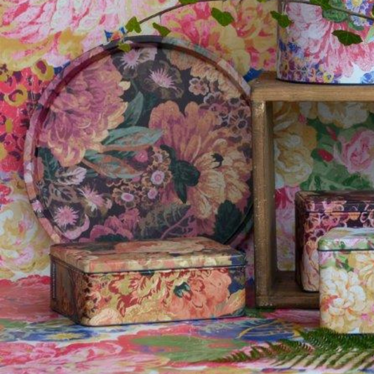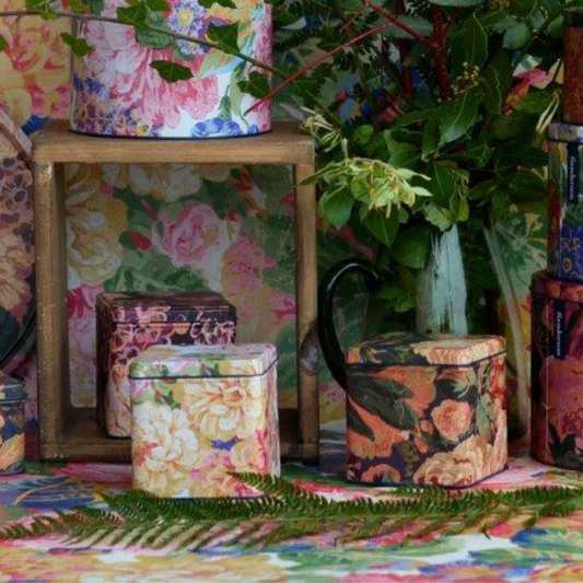 Sanderson - Very Rose & Peony Set of 3 Square Tin Caddies